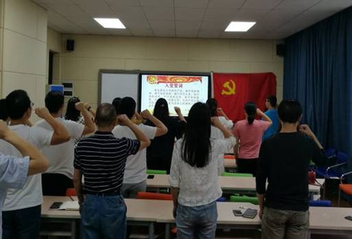 2019年7月4日,我院教工支部开展了“回顾入党初心,重温入党誓词”的主题党日活动。本次活动主要进行三项内容,第一项为教工党员集体奏唱《中华人民共和国国歌》;第二项为曲书记带领教工党员重温入党誓词;第三项大家集体合唱《没有共产党就没有新中国》。整个主题党日活动,形式多样,让广大教师党员坚定了理想信念,锤炼党性修养,引导教师党员时刻牢记入党誓词,遵守党的章程,践行党的宗旨,强化教师党员的意识,牢记房源身份,自觉履行党员义务。