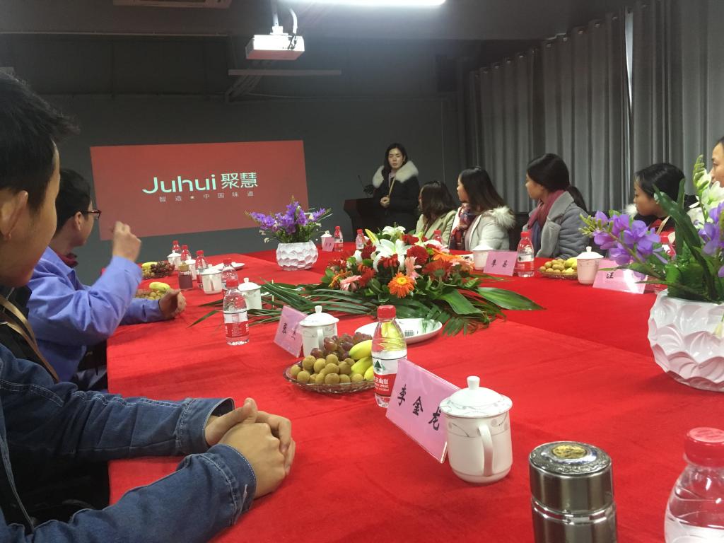 其次,调研走访了聚慧——重庆梅香园事业基团有限公司。在基地与人力资源经理和生产经理与实习生展开座谈会,肖院长了解了大家的实习生活状况、思想动态、就业预期等,并根据大家的现实情况作了分析与解答;学生也分别发表了实习感想汇报。