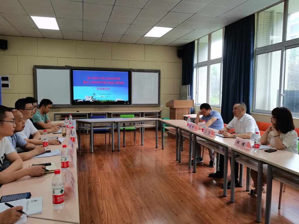 2021年7月5日,四川师范大学生命科学学院院长左勇一行三人来我院交流座谈,学院党总支书记骆孟鑫、系主任、实验室主任、学工办负责人和研究生工作负责老师参加了此次座谈会。