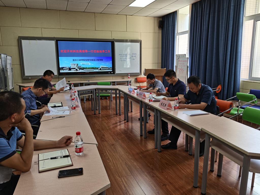 2021年9月29日,开州区科技局党组书记朱泯宇一行三人来我院交流座谈,学院院长肖国生、党总支书记骆孟鑫、以及三峡农科院的相关老师参加了此次座谈会。