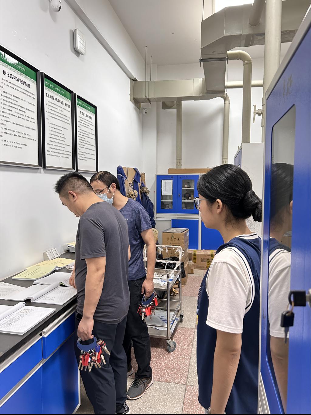 随后,检查小组对库房进行了重点检查。库房作为实验材料和试剂的储存场所,其安全性尤为重要。检查小组仔细查看了库房的通风、防火、防潮设施,确认了库存记录的准确性,并要求相关管理人员定期进行安全检查,及时更新库存记录,确保库房安全无隐患。