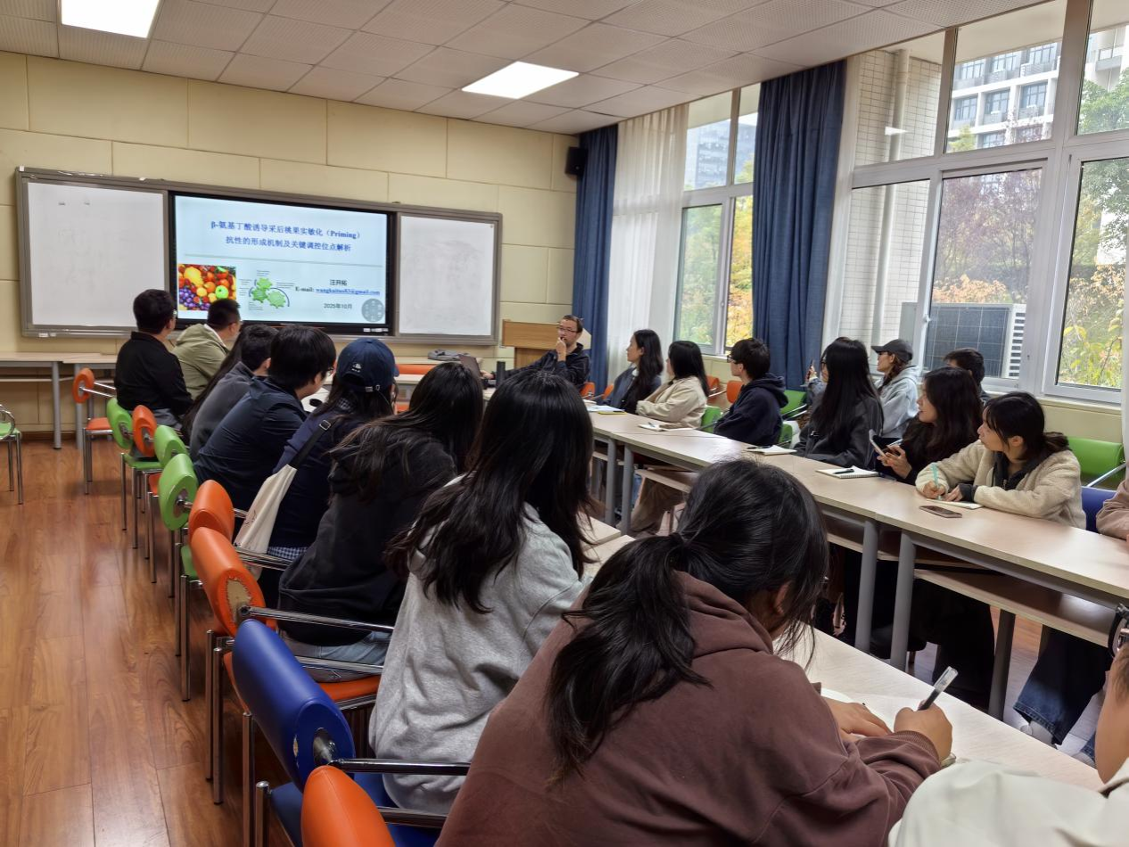 为提高学院学术氛围,加强教职工之间的学术交流,提升研究生的学术能力,我院本年度内启动学术讲座系列活动。活动首场讲座于10月29日上午在慎思楼2栋216举行,汪开拓教授为全院教师及研究生作《采后桃果实敏化(Priming)抗性的形成机制及关键调控位点解析》的学术报告,报告由分管副院长赵峰主持。