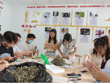 活动伊始,甘教授讲解了关于艾草的科属以及各方面的功能,让同学们了解到艾草属菊科植物,具有止痒驱蚊作用。在甘教授的操作示范下,同学们两两一组,共同完成了艾草条的制作。最后甘教授告诉同学们:“小植物也有大价值,就像艾草一样即使长遍漫山,但终有其所用之处,需要我们留心观察。”
