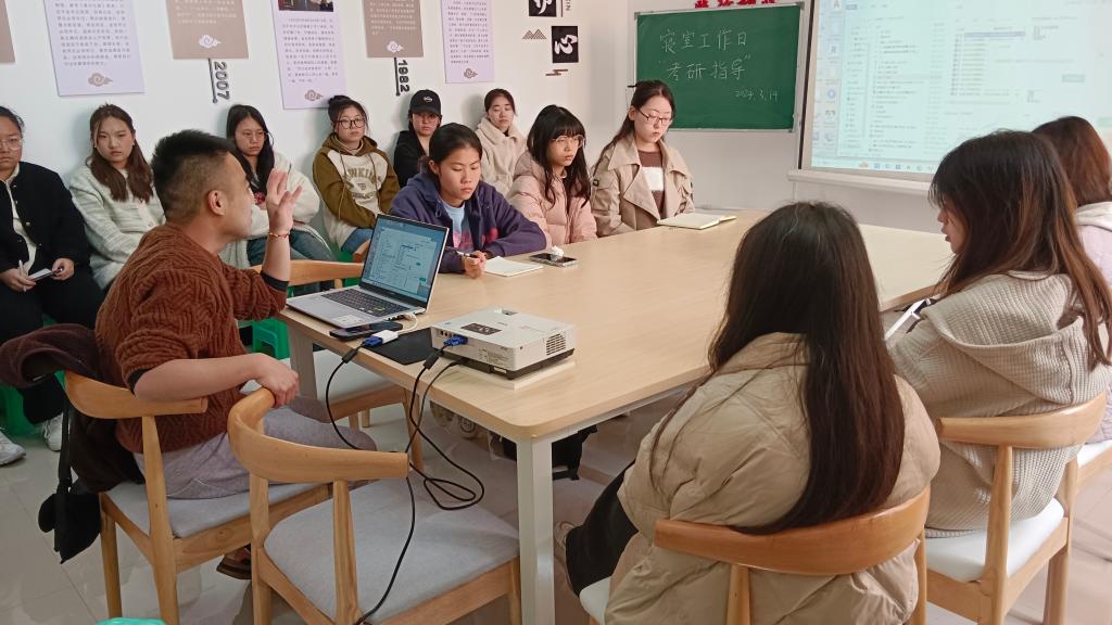 为明确考研规划,梳理考研流程,调整同学们的学习状态,3月14日下午14:30,我院初心工作站在蓝雾苑2舍4楼活动室开展考研指导活动,学院专任教师周游、学生共计17人参加。