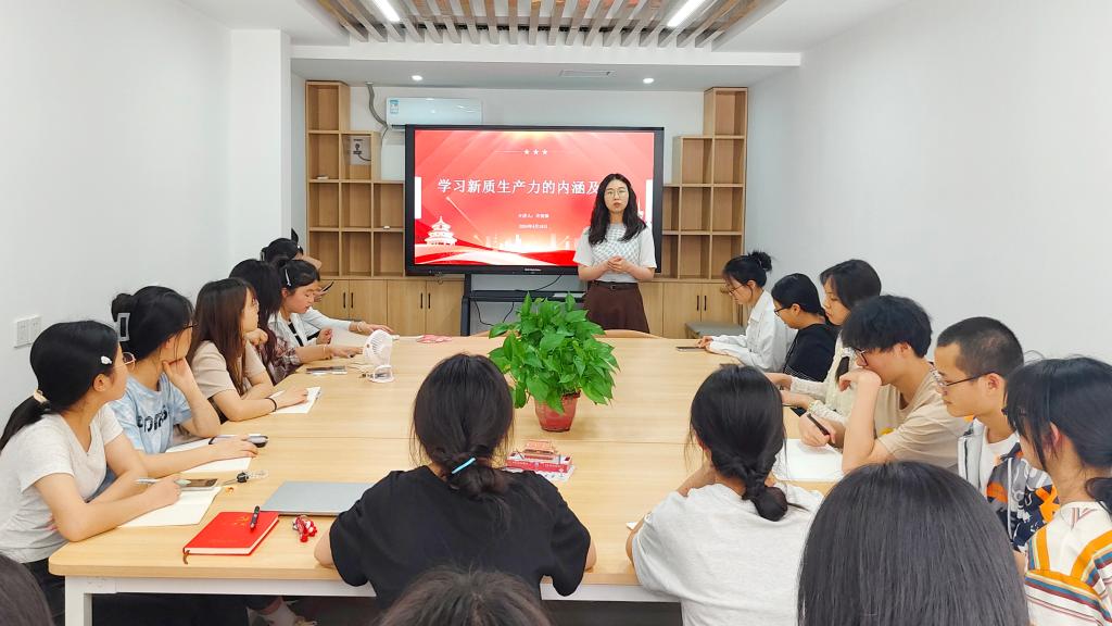 为帮助同学们深入理解新质生产力,培养其适应未来社会发展的核心竞争力,4月18日下午15:00,我院初心工作站在蓝雾苑学生社区活动中心开展第26期寝室工作日活动,活动主题为学习新质生产力的内涵及要求,学院辅导员许美琳、学生共计25人参加。