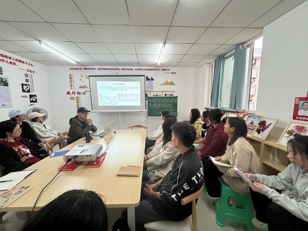 主讲人李彦杰副教授首先展示了目前我国HIV的发病数据、流行趋势以及主要传播途径等,接着介绍了HIV感染后的发展过程及症状,包括急性期、无症状期和艾滋病期的不同表现,从全球HIV发病现状延伸到国内、重庆地区以及国内大学生HIV发病现状,全面展现了艾滋病在不同层面的流行情况。李彦杰副教授着重强调了HIV的预防措施,如安全性行为、避免共用注射器、母婴阻断和健康教育等,还为同学们科普了紧急阻断相关知识,即高危行为发生后72小时内服用阻断药物的重要性。