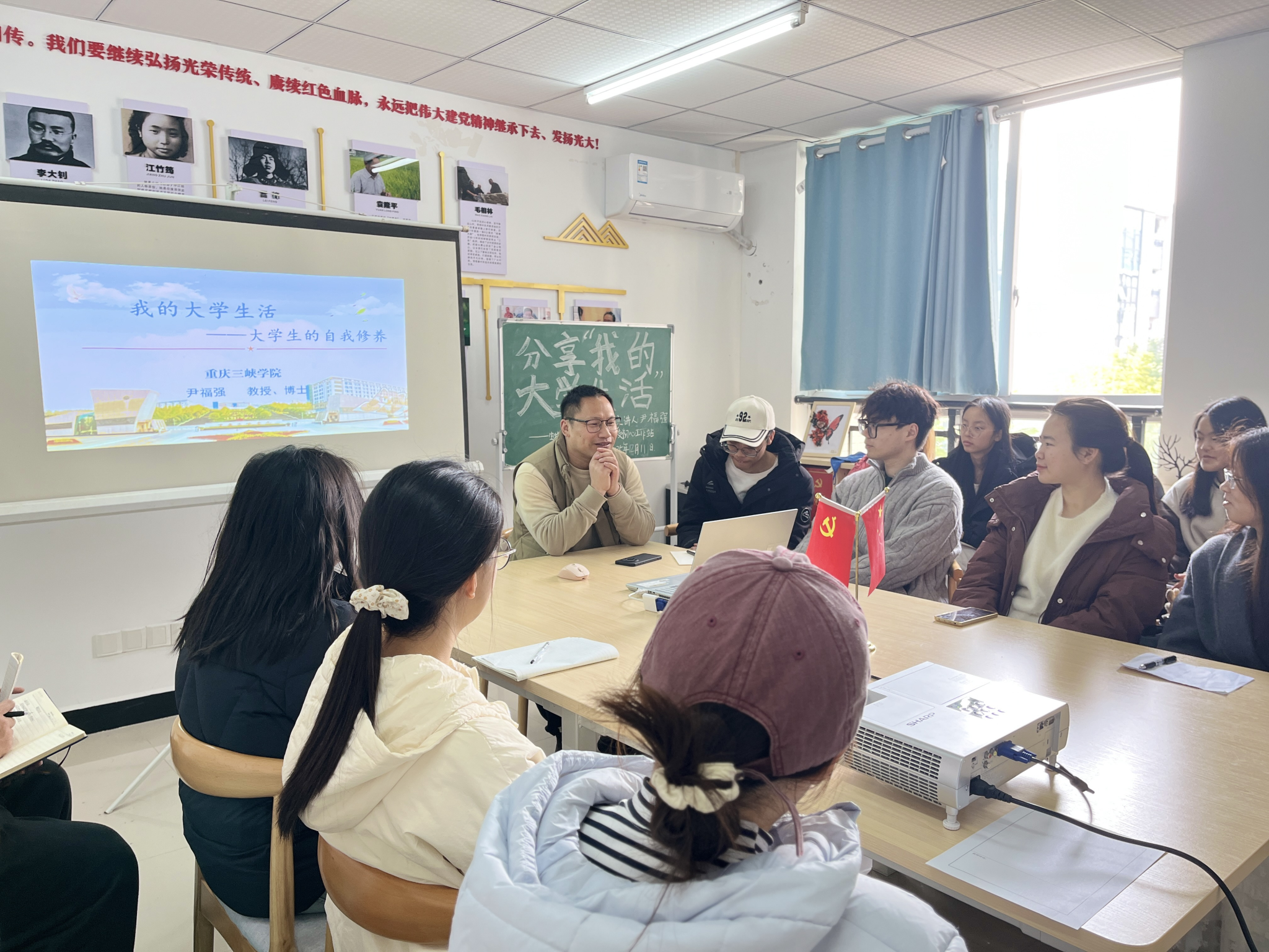 12月11日13:30,我院初心工作站在蓝雾苑2舍4楼活动室开展第66期“寝室工作日”活动,以“分享‘我的大学生活’”为主题,特邀尹福强教授,聚焦大学生成长核心需求,为同学们传递成长经验,指引发展方向,共计17人参加。