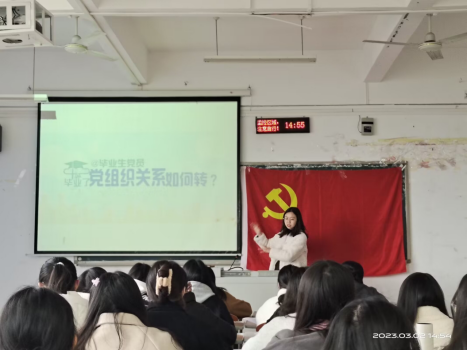 本次党课分别由学生第一、二党支部书记许美琳同志和龚莉同志领学,主要分为两个板块进行学习,分别是学习党的二十大精神和毕业生党组织关系如何转接。许美琳同志和龚莉同志从大会的主题、过去五年的工作、新时代十年的伟大变革、开辟马克思主义中国化时代化新境界、新时代新征程党的使命任务等七个方面对党的二十大精神作出系统解读,并联系实际对大会报告提出的一些新观点、新论断进行阐释。其次,对于不同毕业生的情况进行分析,详尽地讲解了不同情况下,大学毕业生组织关系如何转接。本次党课的学习,不仅坚定了同学们的理想信念,还让学生党员对于组织关系的转接有了清晰的认识,对于毕业后的去向也更明确与清晰。
