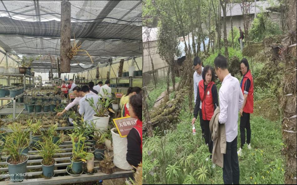 万州区罗田镇梓桐村平均海拔1200多米,具有适宜野生中药材生长的自然资源条件。近年来,重庆罗斛农业开发有限公司带领山区群众在罗田镇建成重庆市首家原生态石斛基地,解决了农民再就业问题。但生产实践中遇到一些实际问题,受公司邀请,我院教工党支部成员实地调查了石斛基地种苗培育与种植示范等情况,详细了解了石斛在生长及加工过程中遇到的问题,并对土壤和石斛进行取样,以便开展问题分析研究,用科技知识指导解决中药材生产加工存在的问题。
