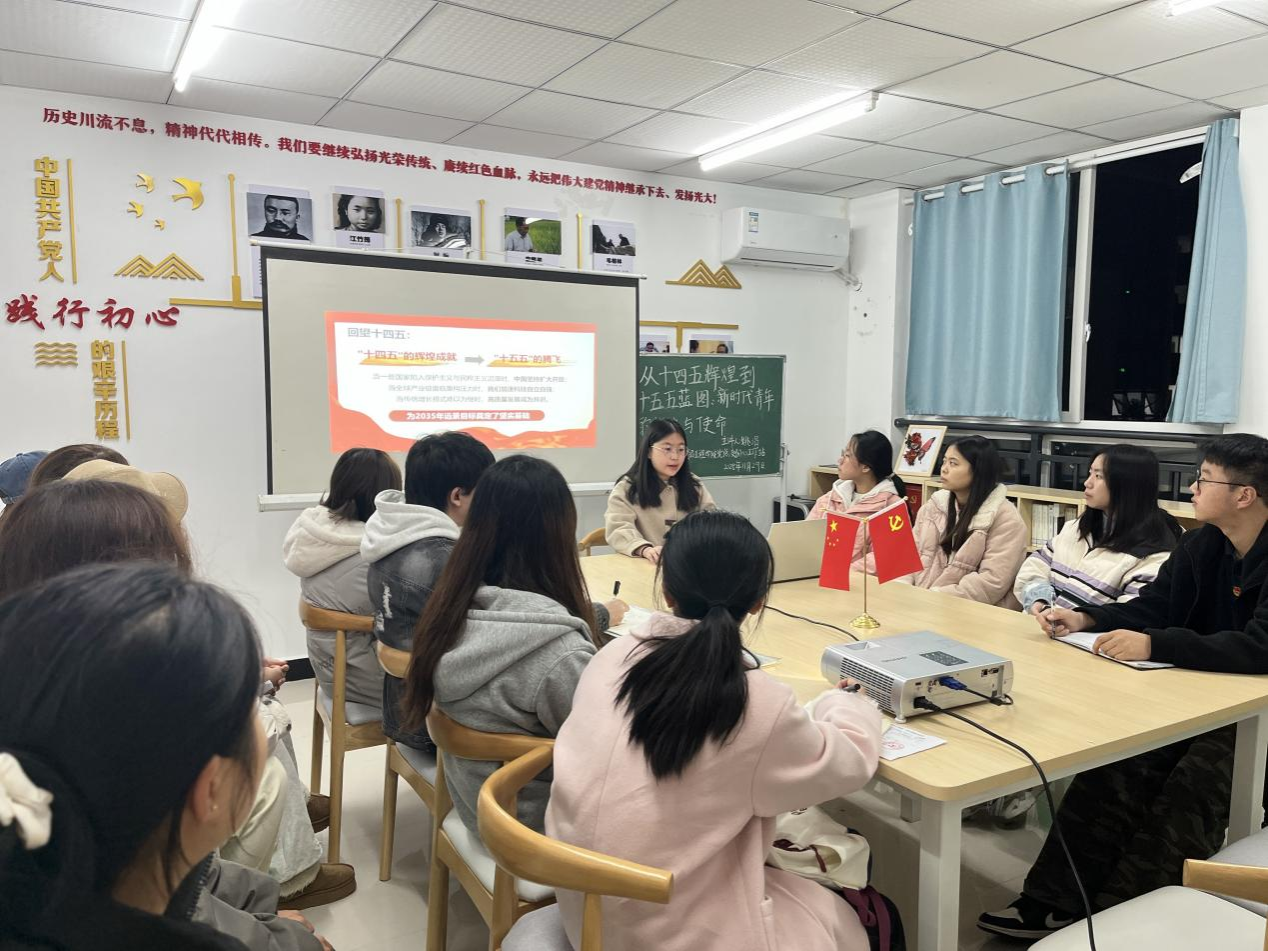 11月29日19:00,我院初心工作站于蓝雾苑2舍4楼活动室开展第27期“理论学习”活动。本次学习以“从十四五辉煌到十五五蓝图:新时代青年的担当与使命”为主题,由姚涓同志主讲,共计15人参加。