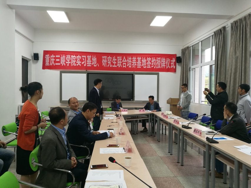 为了充分发挥重庆三峡学院和万州区农委各自的优势,实现优势互补,资源共享,互利互惠,更好地为万州区农业发展服务,做强做大万州区农业产业,促进农业产业升级,实施乡村振兴战略。重庆三峡学院实习基地、研究生联合培养基地签约授牌仪式于2018年5月11日16:30在我校B1-216会议室正式举行。万州区农委副主任魏文树、万州区土肥工作站站长龚毅、万州区农产品质量安全监督检测中心主任魏敏等7位代表,以及我校副校长付川、研究生处处长刘正学、教务处副处长秦刚、我院院长肖国生等出席仪式。签约授牌仪式由我院副院长周浓主持。
