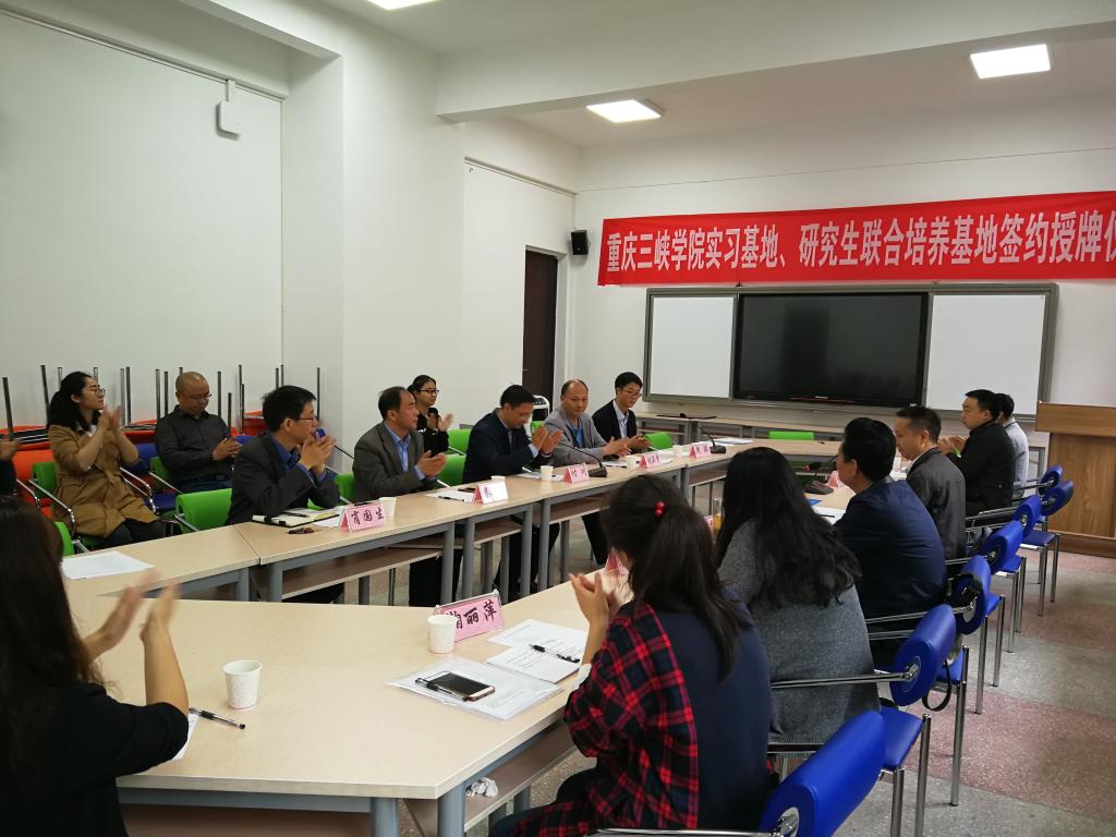 最后,肖国生分别与6家单位负责人就合作协议签字,付川向单位负责人授予重庆三峡学院实习基地牌匾。