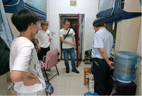 为进一步贯彻落实全市教育系统近期安全稳定和疫情防控工作视频会议精神,做好学生安全稳定工作,7月1日下午,我院党总支副书记陈文剑、学工办副主任李华林带领全体学工人员深入走访学生宿舍,关心关爱学生,排查宿舍安全隐患。