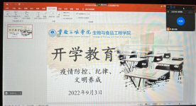 2022年9月4日晚,我院各年级辅导员通过线上的方式组织开展2022年秋季学期开学教育,我院全体学生参加。