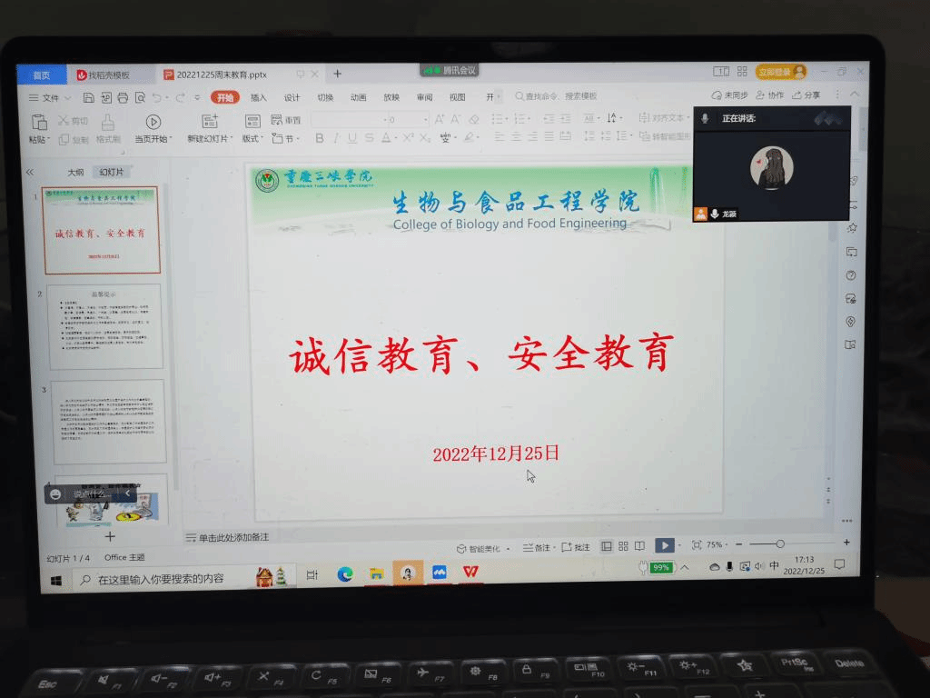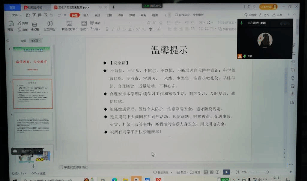 12月25日下午,我院辅导员分年级开展线上诚信教育、安全教育专题周末教育,我院全体学生参加。