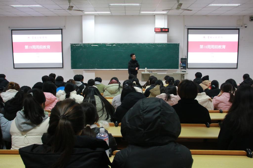 会上,辅导员通过案例分析、课堂讲授等方式,向学生宣讲日常生活中的安全常识,提醒学生注意交通安全、信息安全、人身安全、网络安全、饮食安全、治安安全等,提高自身安全防范意识和自我保护能力。辅导员还开展了考风考纪教育,组织学生学习考试违规违纪相关处理办法,引导学生科学备考,诚信应考。