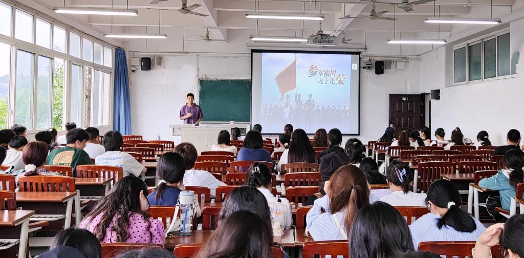 为顺应新时代征兵形势发展,响应国家号召,征集更多高素质大学生兵员入伍,5月19日,我院辅导员分年级开展“参军入伍政策宣讲”主题周前教育,我院全体本科学生参加。