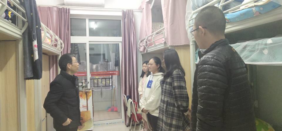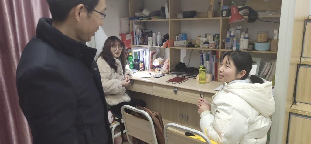 12月17日16:30,我院院长肖国生,学工办副主任李华林,辅导员向丽霞、蒋园园深入学生寝室,为同学们带去温暖与关怀。本次走访旨在排查宿舍安全隐患,了解同学们的期末学习、生活状况,加强师生间的交流。