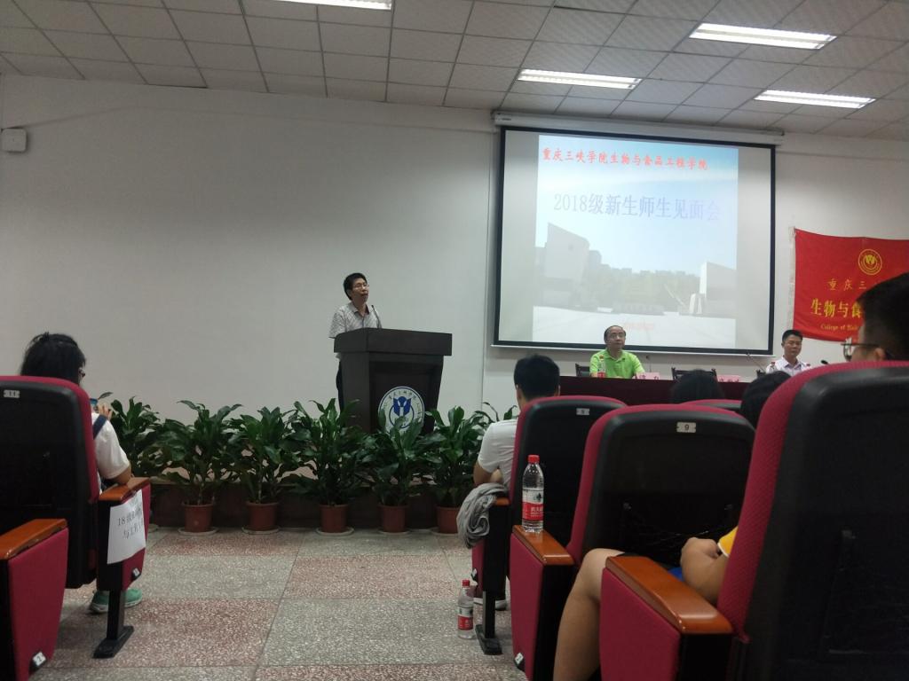 9月7日15:00,2003网站太阳集团在明辨楼2栋106举行了2018级新生见面会,本次大会由2016级食品科学与工程专业廖星蕊主持。出席本次会议的有院长肖国生、党总支书记谭力、副院长周浓,我院各位老师及2018级全体新生。此次会议旨为新生即将开启的大学生活寻找一个新的目标、树立一个新的起点,加强新生对我院的了解,并为师生间的交流搭建起桥梁。