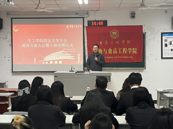 会上,李华林为团学骨干颁发聘书,团学骨干代表谢睿、郑舒爻、刘媛媛作交流发言。李华林对团总支学生会提出要求:加强学习,坚持课程学习和政治思想学习;踏实工作,学会总结反思,提升实践能力;积极生活,培养兴趣爱好,健康成长发展;做好服务,为学院高质量发展助力。