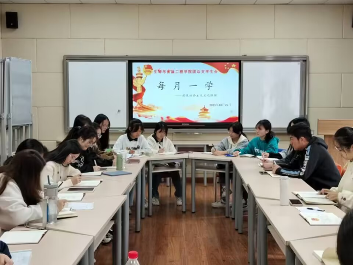 2023年10月26日,我院于线下慎思楼2-216组织学习“建设社会主义文化强国——认真学习《习近平著作选读》第一卷,第二卷”,此次会议参加人员有团总支副书记闫兴运,以及我院团学骨干。