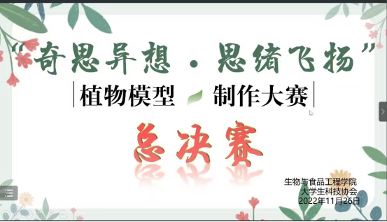 11月27日,生工学院开展了线上“奇思异想,思绪飞扬”植物模型制作大赛决赛,本次活动由甘丽萍、龙颖、阮宇和周游四位老师担任评委,参与学生220人。