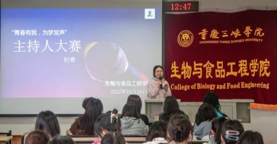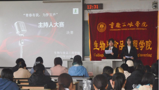 10月28日至10月30日,我院于明辨楼2栋301举办了“青春有我,为梦发声”主持人大赛,共计12名选手参赛,学院学生团体联合会主席谢睿,学生会主席团成员胡枭岚,主持礼仪队队员黎铭、雷琰楸担任评委,共计90余名观众观看。