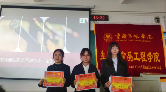 本次大赛分为初赛和决赛,10月28日初赛正式开始,通过自我介绍、主持展示和即兴朗诵三个环节的选拔,共计8位选手入围决赛。10月30日决赛正式拉开帷幕。四位评委根据印象百分百、主持1+1、妙语连珠三个环节打分,最终评选出一等奖:张利娟(2021级生物技术班),二等奖刘小利(2020级食品质量与安全班),三等奖文柳(2022级风景园林班)。