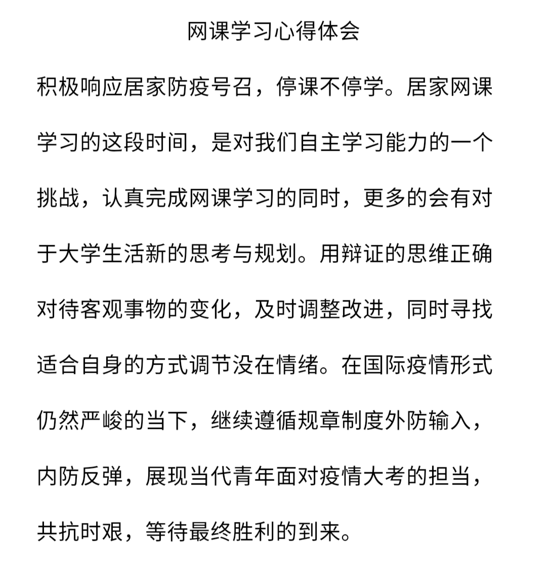 “停课不停学”的线上教学方式,有利于疫情防控的同时,帮助同学们学习专业知识,为返校后的线下学习奠定基础。线上学习接近尾声,疫情仍在继续,希望同学们不能松懈,配合防疫工作,为返校做好充足准备。(生工学院潘传青李华林)