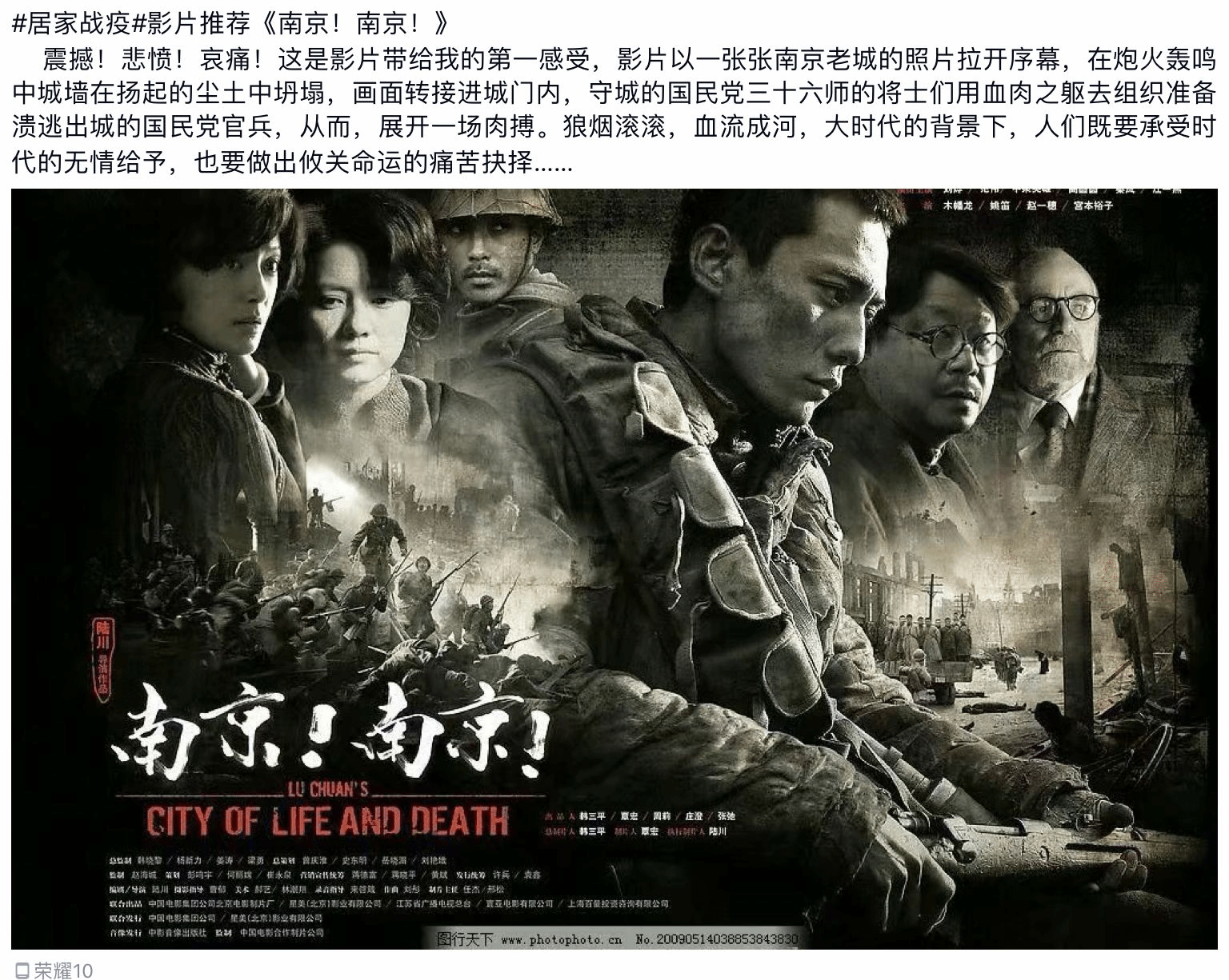 此次电影赏析打卡活动增强了同学们的民族自信心,排遣了同学们的学习压力。同时,同学们通过电影赏析有了新的感悟,提升了同学们的思想意识。希望同学们在今后的学习生活中继续保持积极乐观的心态,努力学习,不断前进。(生工学院 潘传青 李华林)