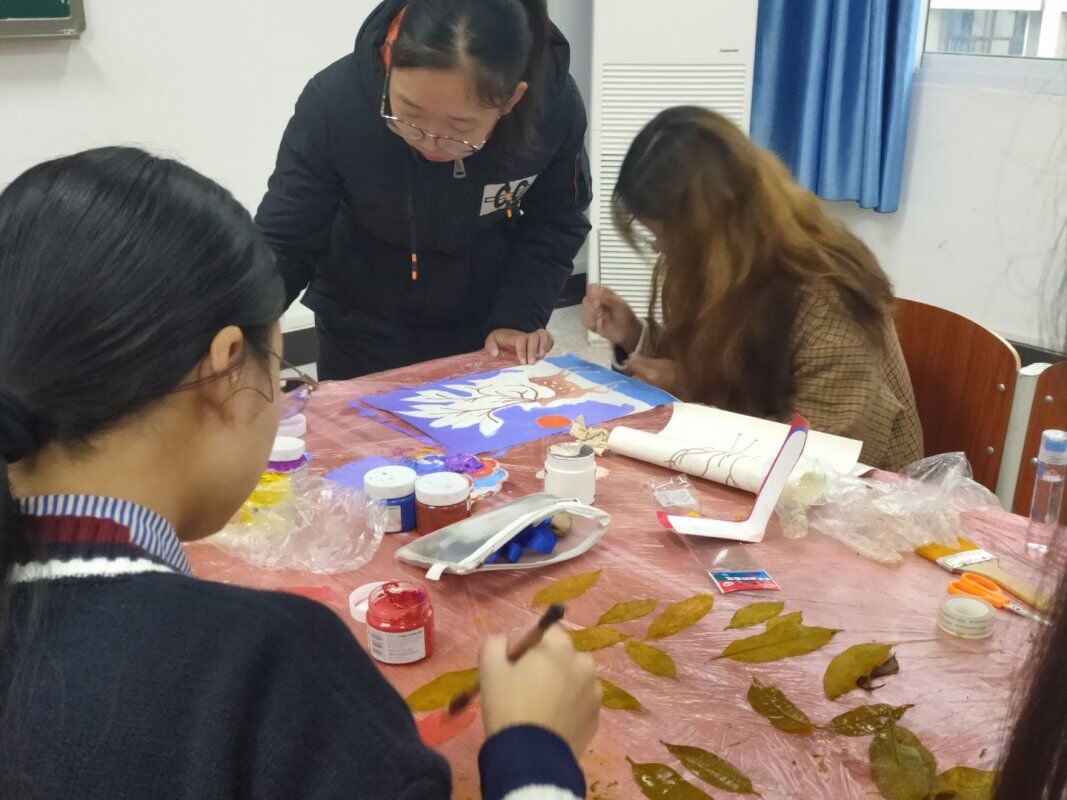 本次大赛可分为两个环节,一是现场制作,各参赛选手有条不紊地开展作品创作,刷叶脉、叶脉上色、贴叶脉……大家分工明确、默契配合。评委及观众则可以选择观看影片《小小的愿望》或自己动手刷叶脉。二是现场讲解,选手们依次展示自己的作品并讲解创作理念,精巧的作品在选手的巧舌下更显生动形象。最后,主持人宣布各小组得分和排名,评委为小组代表颁发奖状并合影留念。
