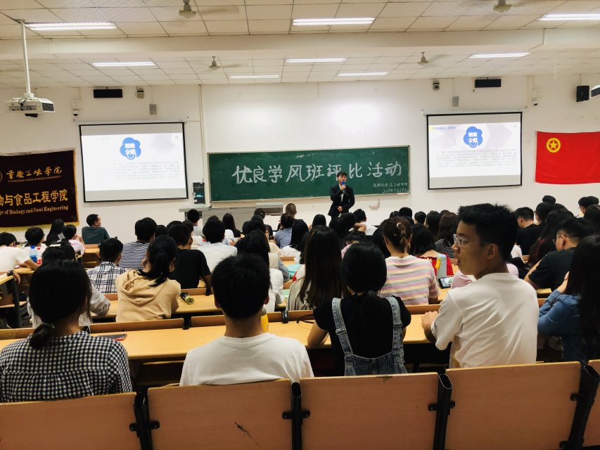 9月27日19:00,我院于明辨楼二栋102开展“优良学风班”评比展示。出席本次活动的有学工办主任李华林,辅导员蒋园园、陈华华,2017、2018、2019级学生参与其中。本次活动旨在进一步加强我院班级优良学风建设,充分发挥优秀班级的带头表率作用,带动各班级共同进步。