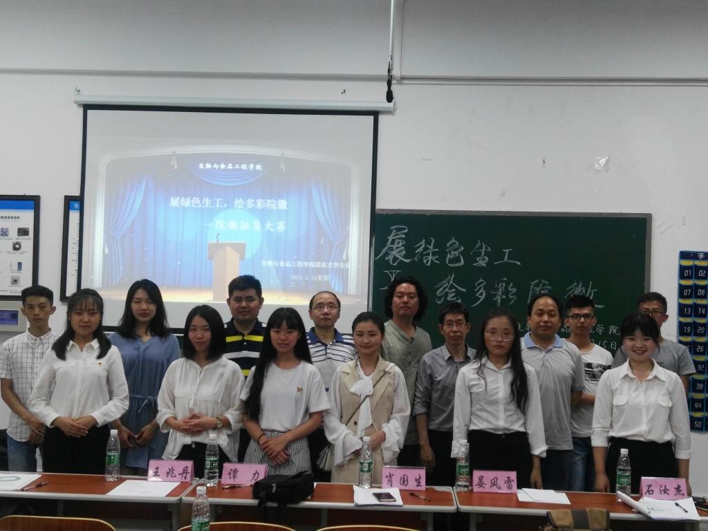 5月15日晚7:00,2003网站太阳集团在实验楼C-405举行了“展绿色生工,绘多彩院徽”设计大赛。我院肖国生院长、党总支谭力书记、《写生中国》副主席晏风雷、食品系王兆丹主任、园艺生物系石汝杰主任出席活动并担任评委,学工办副主任李华林、辅导员向丽霞及我院各年级学生参与活动。