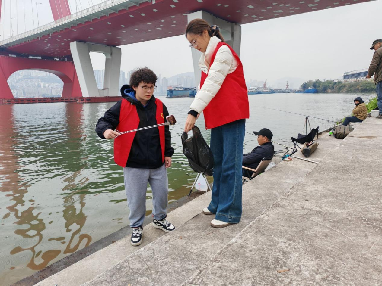 活动期间,志愿者们统一着装、分工协作,手持夹子、垃圾袋等清洁工具,沿公园江岸有序进行清理。经过数小时作业,沿岸散落的烟头、塑料垃圾等被逐一收集,并统一投放到指定垃圾箱内,江岸环境得到明显改善。