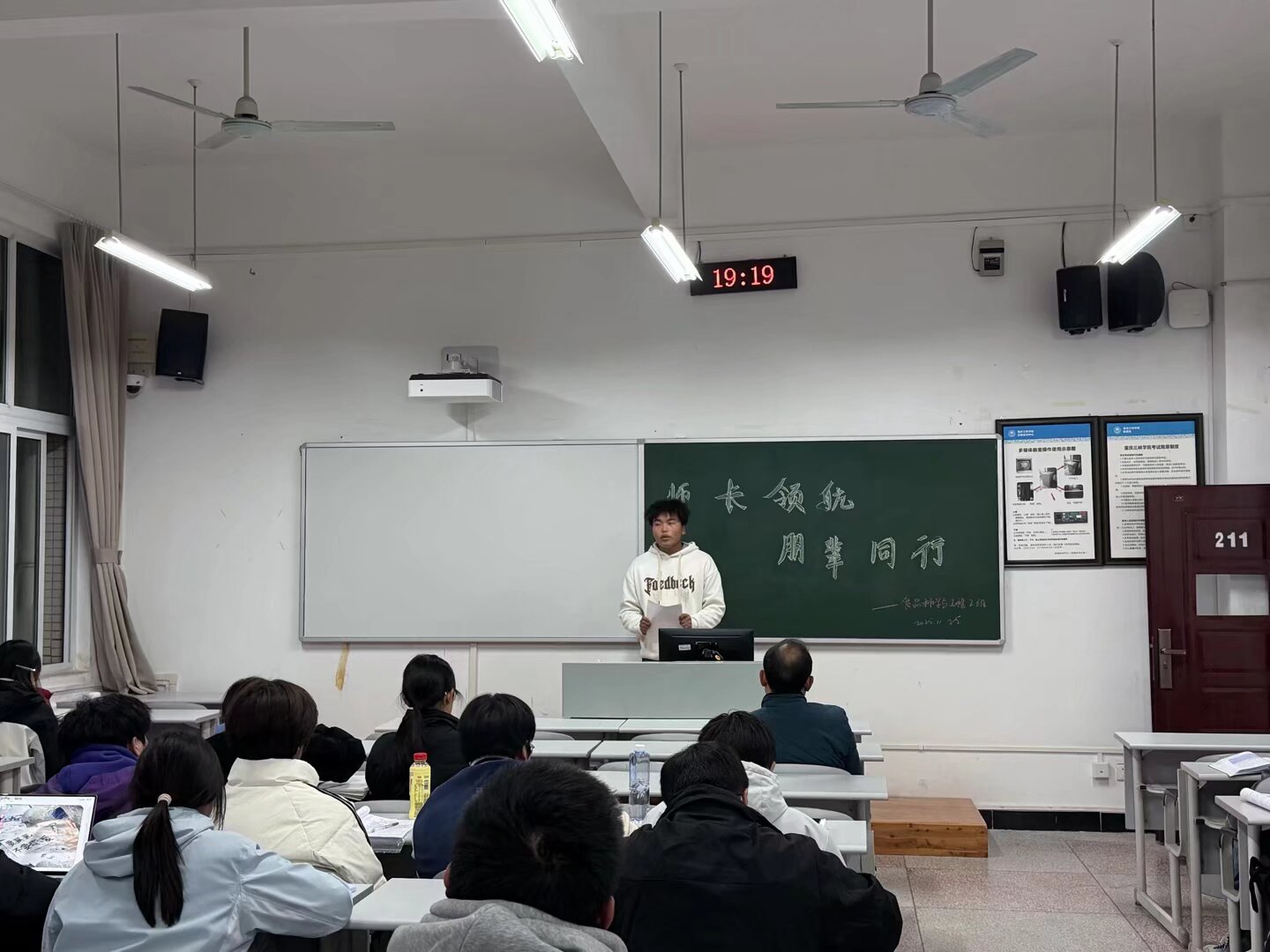 2025年11月25日,我院在明辨楼3-211教室成功举办“师长领航,朋辈同行”领导干部联系班级活动。学院副院长石汝杰应邀担任主讲,面向2025级食品科学与工程2班全体学生开展了一场内容详实、针对性强的学业指导讲座。