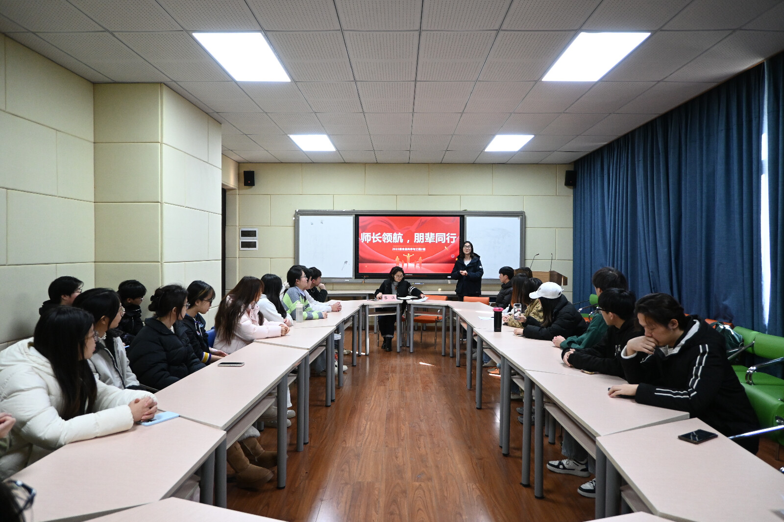 2025年12月5日,我院在慎思楼2-216开展“师长领航,朋辈同行”领导干部联系班级活动。学院党总支副书记黎涵为2023级食品科学与工程2班全体学生作专题指导报告,旨在助力学生明确发展方向,提升综合能力。