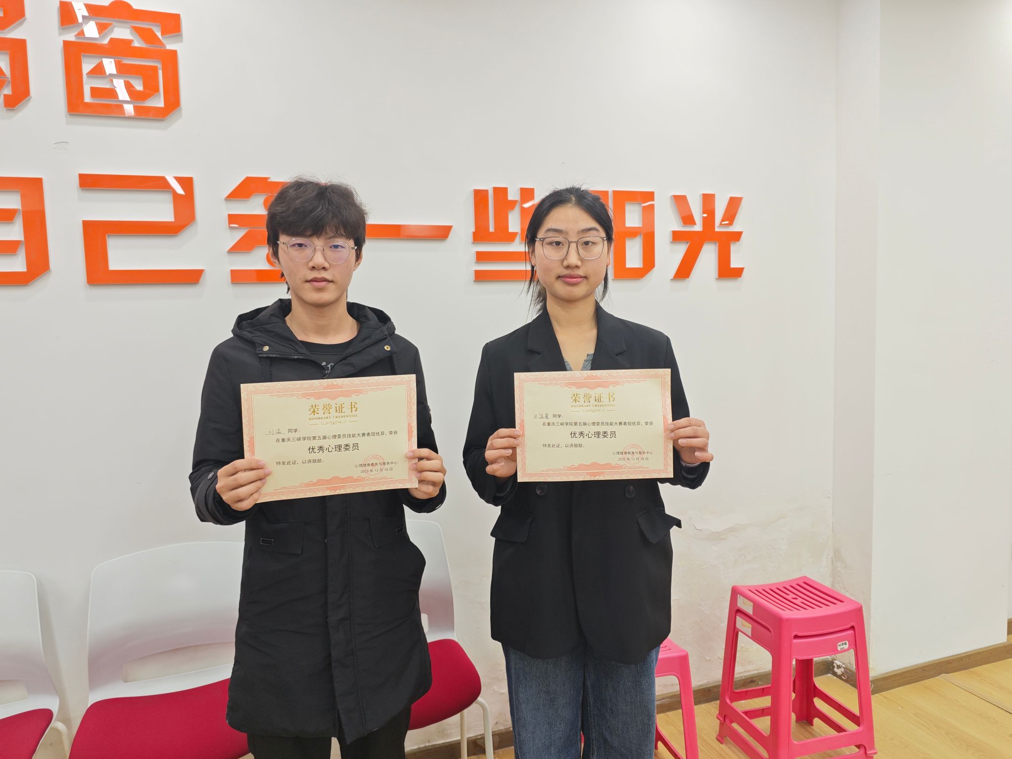 为加强心理委员队伍建设,提升心理支持能力,营造良好校园心理氛围,2025年12月18日,重庆三峡学院第五届心理委员技能大赛圆满落幕。李晨光、李小鹏、田飞霜三位老师担任大赛评委,全校共25名选手参赛。我院选送的2名优秀心理委员在比赛中表现突出,荣获“优秀奖”。