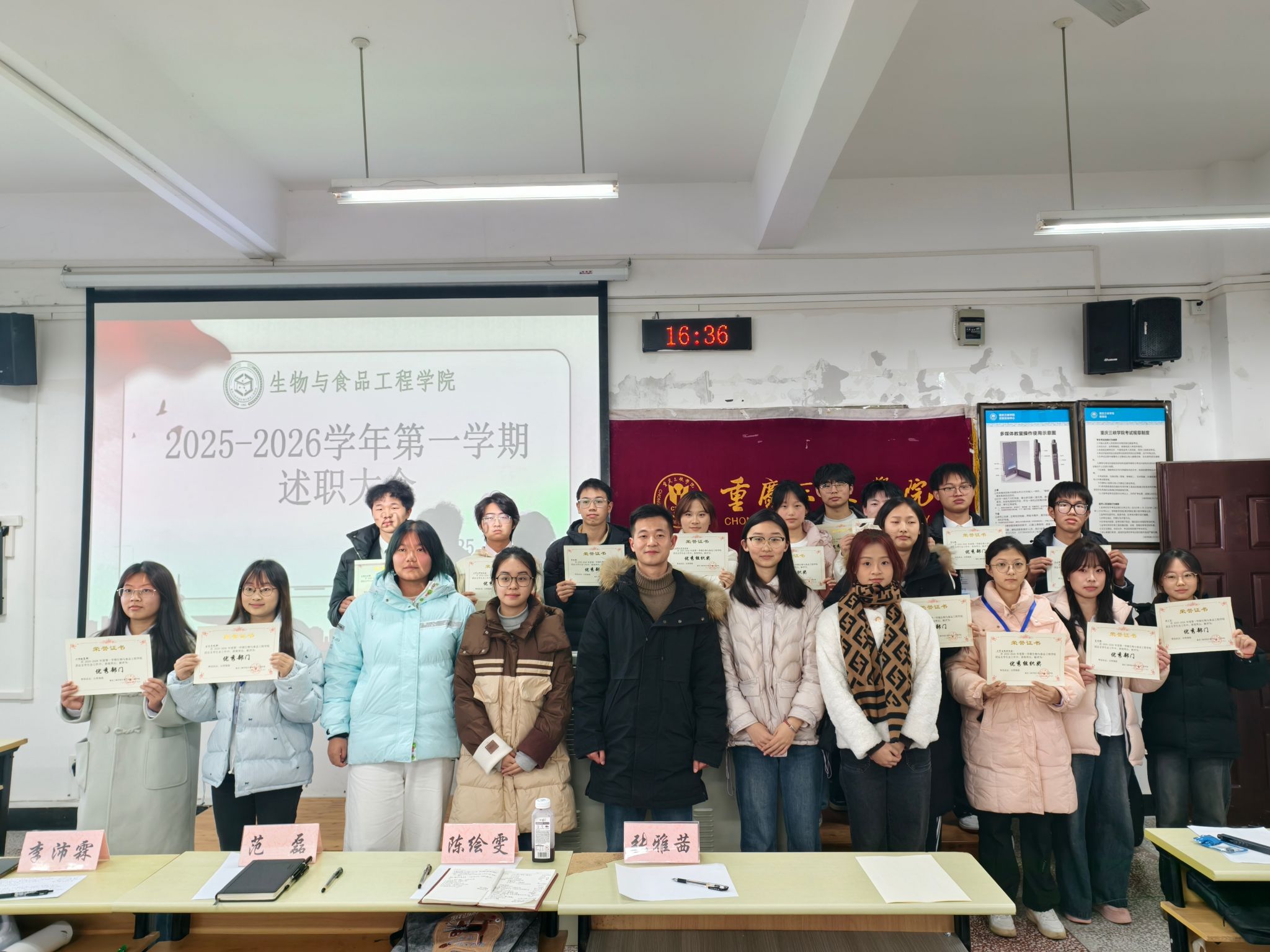 为全面回顾过去一学期的工作成效,表彰优秀部门,并对新学期工作进行规划和展望,2025年12月25日,我院团总支在明辨楼2栋303召开了2025-2026学年第一学期述职大会。学工办主任范磊老师、学生会主席团成员、各部门负责人及工作人员参加会议。