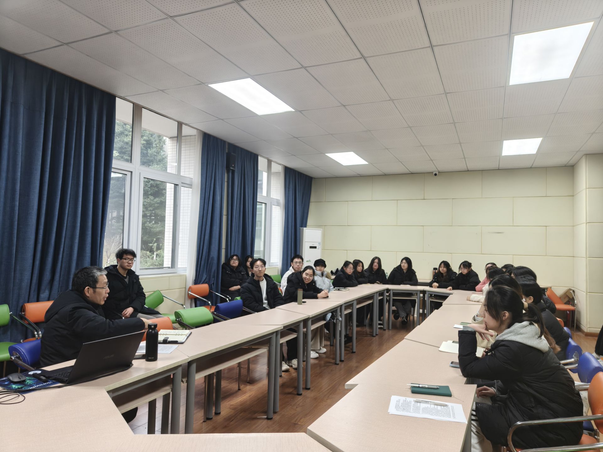 2025年12月30日,我院在慎思楼2栋216会议室开展“师长领航,朋辈同行”领导干部联系班级活动,学院党总支书记肖国生和2024级智慧农业班参加。