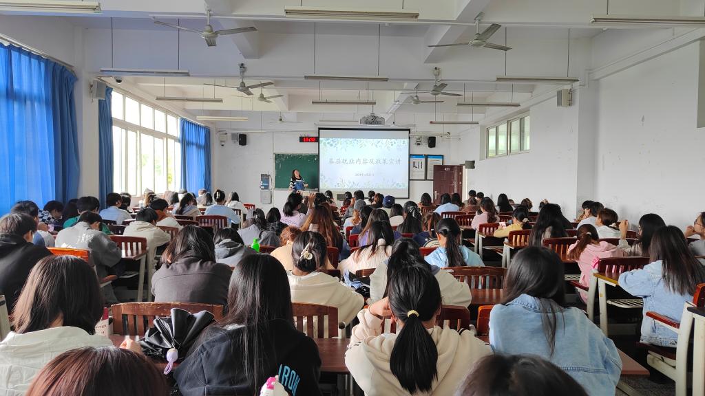 目前,随着国家经济的发展和产业结构的调整,基层就业已成为高校毕业生就业的重要渠道之一。基层就业为高校毕业生提供了广阔的平台和丰富的实践经验,有助于毕业生快速成长。在乡村振兴战略的背景下,基层就业市场潜力巨大,对于缓解就业压力、促进区域经济发展具有重要意义。我院将继续开展基层就业内容及政策宣讲活动,为更多同学指明就业方向。(许美琳 黄 雷)