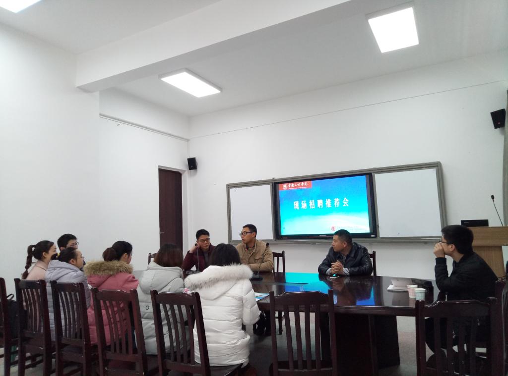3月6日15:30,我院在实验楼B1-216室举办了成都和合医学检验所有限公司专场招聘会。和合医学检验集团张平总经理、马兵主管,学院周浓副院长、秦洪文老师及2018届部分毕业生参加。